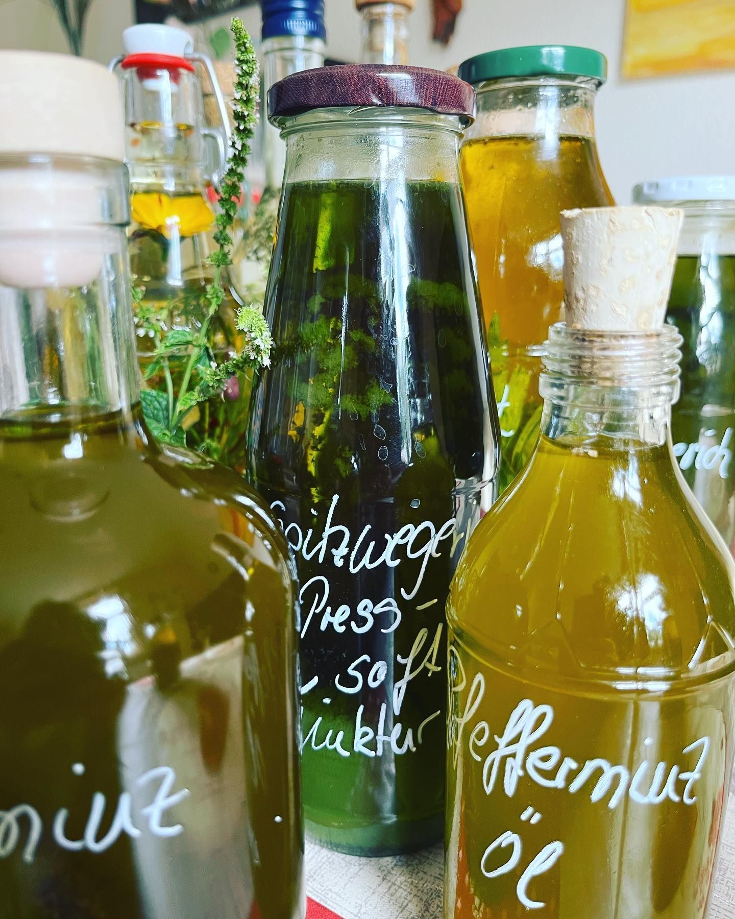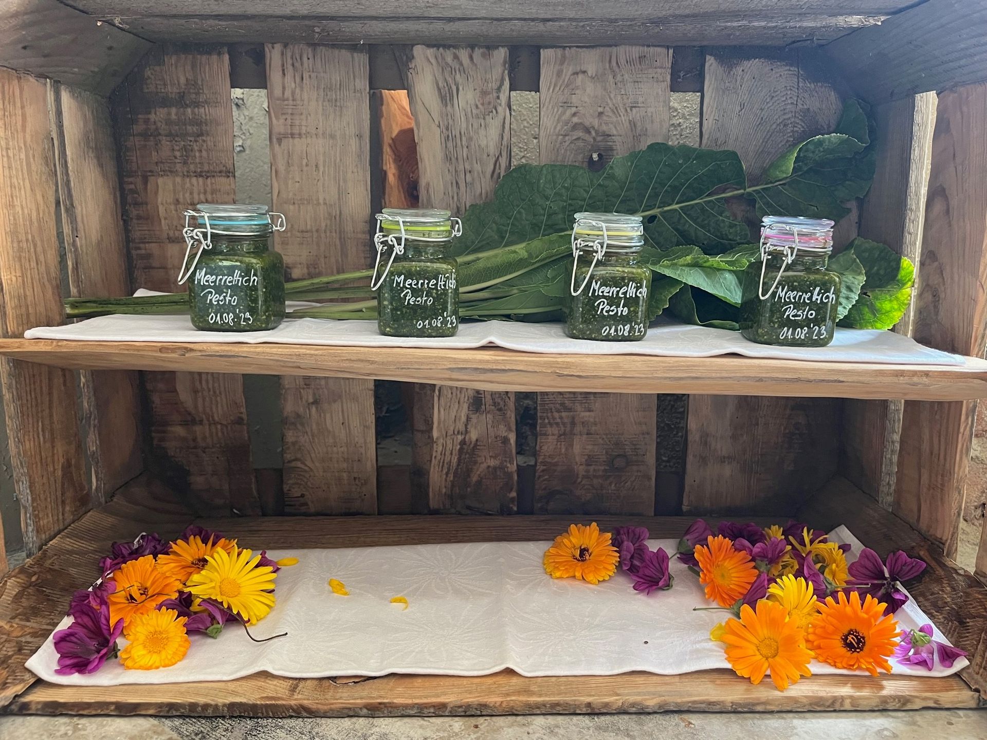 Wir treffen uns um 9 Uhr, trinken gemeinsam Tee und lernen uns kennen. Dazu reichen wir leckeres frisches Brot mit Wild- Meerrettich- Pesto oder Kräuterbutter, je nach Saison. Es folgt eine spannende Führung durch unseren Kräuterhof und eine kleine Tour durch das wunderschöne Oderbruch. Anschließend stellen wir aus dem Gesammelten heilende Tinkturen und Salben her, wo jeder Teilnehmer ein Glas mit nach Hause nehmen kann.